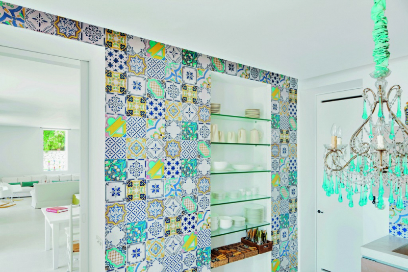 Эффект лоскутного одеяла достигается с помощью небольшого размера плиток, имеющих разные рисунки, узоры и орнаменты. Они располагаются в произвольном порядке, позволяя сделать неповторимый рисунок.