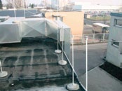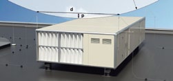 Для построения изолированной системы молниезащиты используются специальные элементы из производственной программы OBO Bettermann – изолированные стержни различной длины (от 0,5 до 6 м) из пластика, армированного стекловолокном, а также специальные соединители и держатели, позволяющие создать любую конфигурацию для защиты различных типов надстроек над уровнем кровли. Предложенные ОВО элементы и решения дают возможность защитить практически любые надстройки, даже если к ним подводится электропитание. Молниеприемные стержни, токоотводы и другие электропроводящие элементы размещают на расстоянии от защищаемого объекта таким образом, чтобы исключить перенос высокого потенциала на корпус защищаемой надстройки или подведенную электропроводку (рис. 1). С помощью элементов системы изолированной молниезащиты можно выполнить защиту не только отдельных кровельных объектов, но и протяженных надстроек, таких как вентиляционный короб, чиллер и другие обширные по площади и насыщенные электрооборудованием установки (рис. 2).