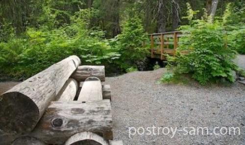 Чтобы сделать для дачного участка скамейку из дерева со спинкой необходимо заготовить три вида дерева – толстое бревно, обычные доски до 3 см и брус, диаметром до 7 см.
