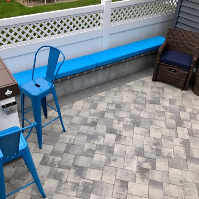 Еще один простой способ изготовить лавочку – использовать для этого строительные блоки и брусья. Обработанные, они легко вставляются в отверстия блоков.