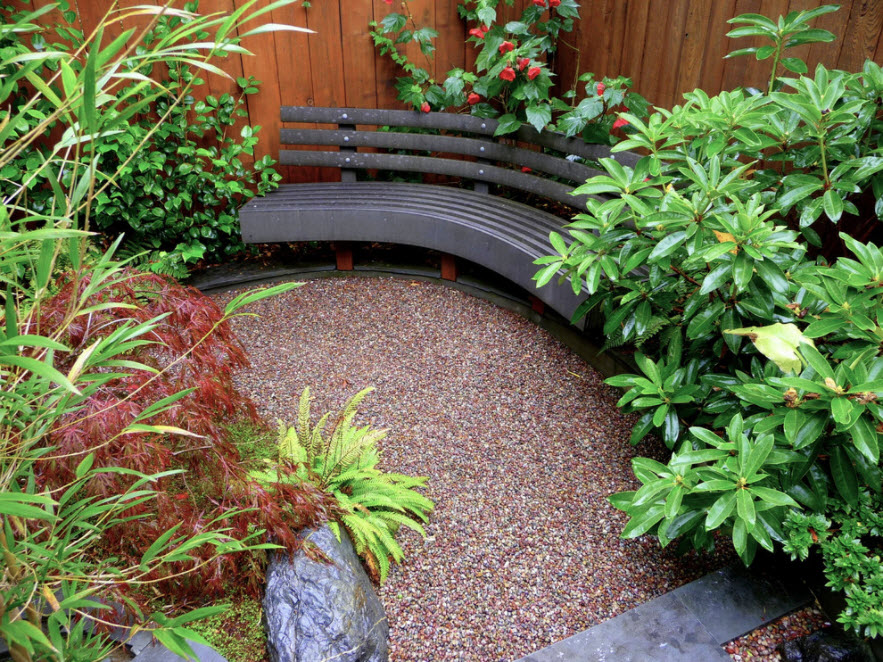 - Релаксационная – зачастую такие скамейки «спрятаны» где-нибудь в самом тихом и укромном уголке дачного участка, подальше от чьих-либо глаз. Это место должно быть самым тихим и уютным для того, чтобы можно было насладиться отдыхом на свежем воздухе. Основное требование к такой скамье – комфорт, кроме того она может быть внушительных размеров для того, чтобы можно было не только присесть, но и прилечь.