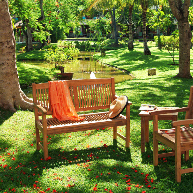 Лучший материал для изготовления скамеек – древесина, самая устойчивая к влаге и гниению – лиственница, вишня, орешник и дуб. Самым оптимальным вариантом является тик, который содержит в своей породе натуральные смолы, что защищают предмет мебели от гнили и различных насекомых, разрушающих древесные породы.