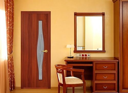 Изделия ПВХ (поливинилхлорид) – это дверное полотно из МДФ, внутри которого находится сотовое наполнение, а сверху находится покрытие их пленки ПВХ . Прелестью этих дверей и их несомненным плюсом можно считатьмалый вес, износоустойчивость и отличную звукоизоляцию.