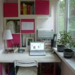 Рабочее место. Если комната предназначена для школьника, то на балконе можно обустроить прекрасную рабочую зону. Балконная дверь демонтируется, а на месте оконного проема делаются стеллажи для книг. При таком оформлении балкона должны лидировать теплые нейтральные оттенки, чтобы можно было сосредоточиться на занятиях. Рабочий стол устанавливают у «короткой» стены или же вдоль балкона. Если помещение тщательно утеплено, то и техника здесь окажется в безопасности, так что смело устанавливайте на рабочий стол компьютер.