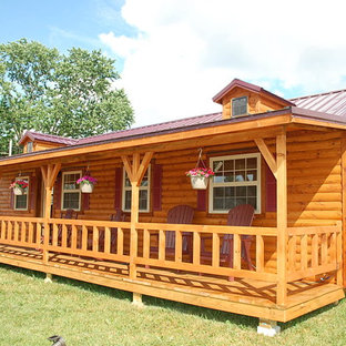 Стильный дизайн: одноэтажный, деревянный, маленький, коричневый дом в стиле рустика – последний тренд