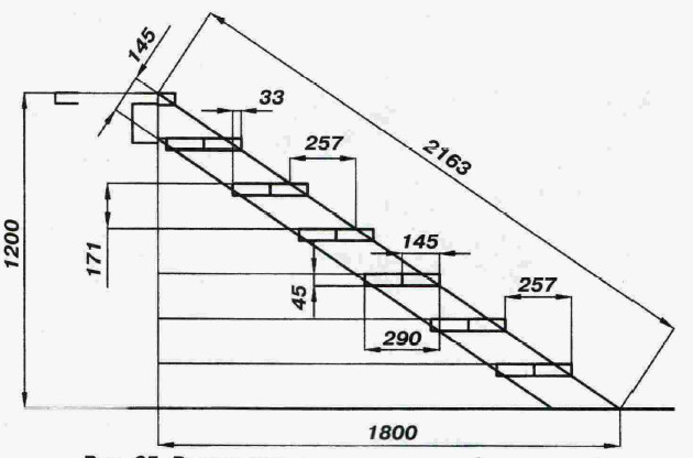Совет. Если уложить большее количество лаг на единицу ширины лестницы (например, не стандартные 2, а три), то можно уменьшить толщину облицовочных досок для проступей. Однако это не приведет к экономии, так как требуется больше материала на раму и больше времени на ее сборку.