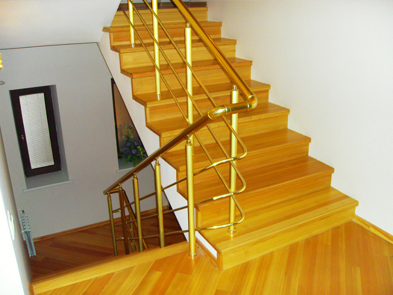 Для выполнения элементов могут использоваться разные породы древесины – прочный и очень дорогой дуб или более дешевые (но менее долговечные) сорта. Альтернативой могут выступить проступи, сделанные из ламината, представляющего собой композитный материал, стойкий к истиранию, сравнительно недорогой и прочный, хорошо поддающийся обработке.