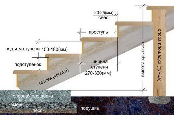 - Проступь – горизонтальная часть ступени, определяет ее рабочую ширину и воспринимает все нагрузки по износу.