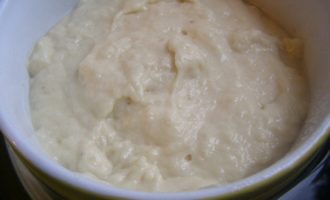 Долго вымешивать его не нужно, просто перемешайте, чтобы не было комков. Вымешивайте до такой густоты, чтобы оно медленно сползало с ложки.