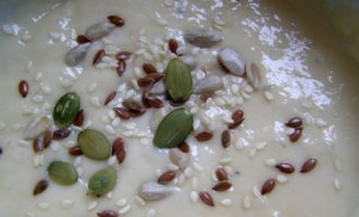 Ее может понадобиться чуть больше или чуть меньше, всё зависит от ее сорта и качества. Тесто должно быть густым и потихоньку сползать с ложки или венчика.