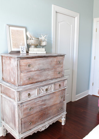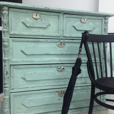 Не обязательно даже снимать старое покрытие — удалите с мебели загрязнения (используйте любое средство для «кухонной» уборки), слегка пройдитесь шкуркой, нанесите слой адгезионной грунтовки и два-три слоя краски. Возможно, выйдет не так идеально, как при полноценной реставрации — будьте готовы.