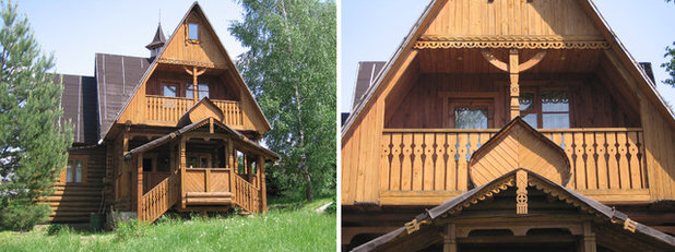 Деревянные строения эффектно выделяются на фоне неживого пластика. Резная роспись обладает волшебной магией, защищающей владельца жилища от напастей. Оригинальный резной декор дома из дерева должен быть гармоничным.