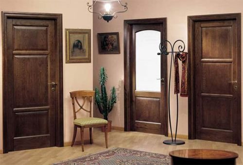 Изготавливаются из клееных кусков древесины с добавлением, с разными по направлению волокнами. Двери получаются мощными и тяжелыми, так как все-таки состоят из натурального сырья. Изготавливаются из ольхи, ясеня, но самые идеальные образцы получаются из дуба. Внешне межкомнатные двери выглядят презентабельно: отличный рельефный рисунок, четкая структура. Специальная пропитка делает природный окрас полотна красного и коричневого цветов еще выразительнее.