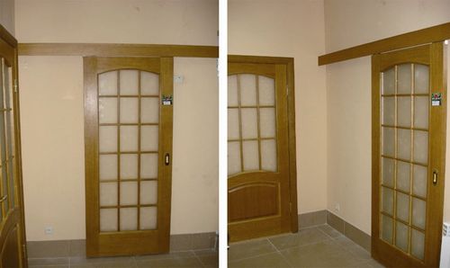 - Ламинированные и шпонированные. Между собой отличаются только внешней облицовкой, внутри почти одинаковые. Чаще применяются для раздвижных моделей.