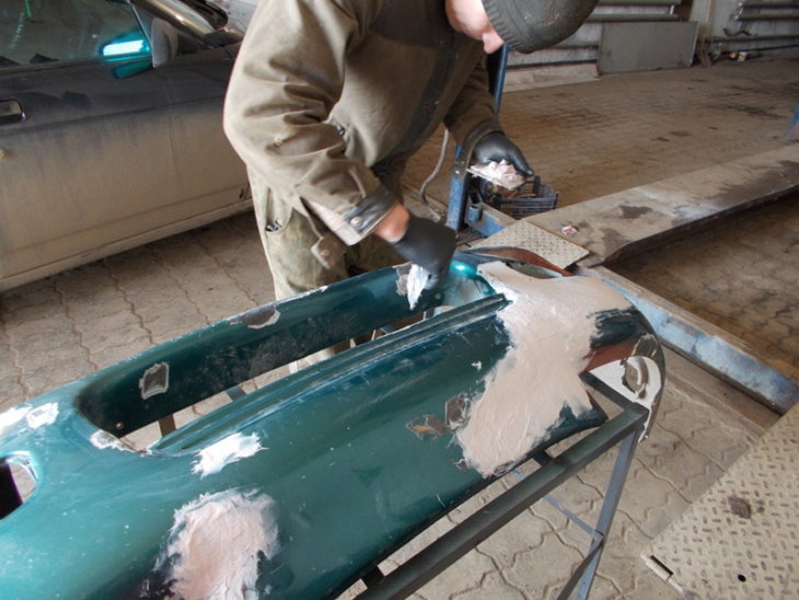 Практически, работы по подготовки пластика к покраске, почти не отличаются от работы по кузову. Если бампер крашенный и не видны места чистой пластмассы, то все по плану. Обезжириваем, шпаклюем до выравнивания, потом шлифуем. Для качественного ремонта можно использовать специальную шпаклевку для пластика. Но, цена у нее кусается, поэтому, чаще используют обычную двухкомпонентную полиэфирную шпаклевку.