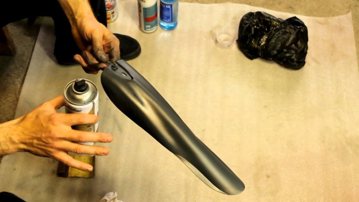 Шаг_5 Теперь можно приступать к окрашиванию пластика аэрозольной краской . Встряхивайте спрей в баллончике в течении не менее 30 секунд, распыляйте аэрозольную краску с расстояния 20-30 см от поверхности. Класть краску нужно плавными равномерными движениями. После высыхания первого слоя, на что уйдет 15-20 минут, нанесите последующие слои краски. При окрашивании пластика рекомендуется нанести не менее 2 – 3 слоев краски.