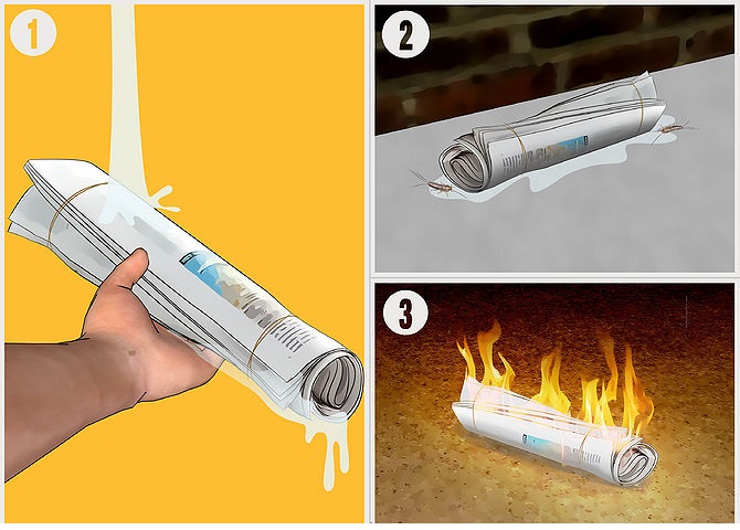 - Метод 2. Чтобы поймать чешуйниц таким методом, вам нужна всего лишь газета и пара резинок. Вам необходимо смотать газету в рулон и закрепить резинками оба края. Далее намочите этот рулон и перед тем, как отправиться спать, положите его на пол. Чешуйницы ведь любят бумагу, поэтому отреагируют на приманку, забравшись внутрь газетного рулона. А вы, в свою очередь, утром сожгёте бумагу вместе с вредителями внутри.