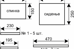 - для 1 сидения из двух досок – 1,4*10,5*26,3 см.