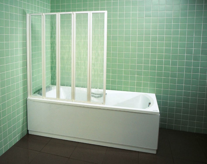Можно подобрать экран, полностью закрывающий купель и мы получим комфортабельную душевую кабину или ограничиться небольшой стационарной ширмой – всё зависит от наших предпочтений.