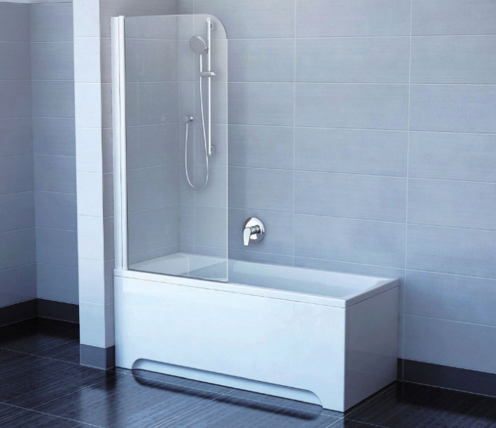 Эта универсальная ограждающая конструкция в равной степени подходит как для встроенных душевых кабин, так и для традиционных купелей.