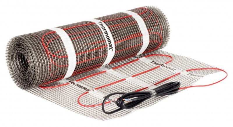 - Маты – уже готовый кабель, закрепленный на сетке. В продаже чаще всего можно найти их мощностью 120 и 160 Вт/м2. Есть совсем слабенькие варианты (100 Вт/м2), а есть и более мощные 180/м2 (Thermo).