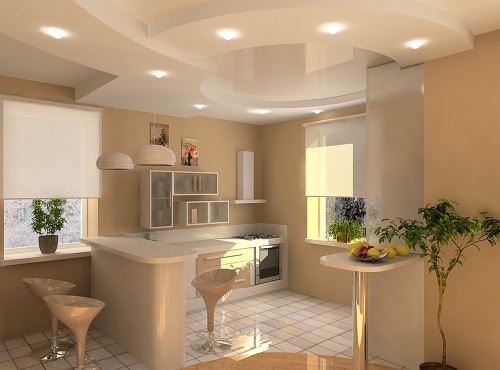 Итак, гипсокартон и кухня очень даже совместимы. Использование этого материала позволит воплотить смелые дизайн-идеи и изменить помещение до неузнаваемости. Многоуровневые гипсокартонные потолки позволят выделить рабочие зоны кухни, применить необычное освещение. Материал удобен в работе и прост в монтаже.