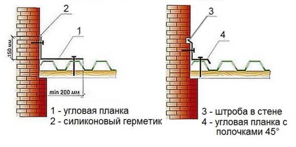 Примыкание профнастила к стене