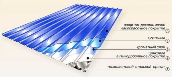 Цветной профнастил имеет много слоев