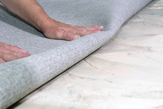 Прямое приклеивание — метод, когда напольное покрытие укладывается на клей по всей площади. Способ замечательно подходит для настила небольших кусков ковролина и исключает возникновение морщин и пузырей.
