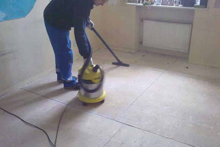 - Основание освобождается от мебели, техники и прочих предметов интерьера. Затем его очищают при помощи пылесоса или метлы.