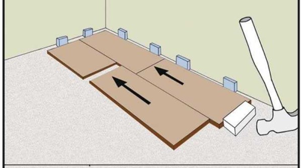 Если у вас возникает вопрос: «как закрепить ламинат?», то знайте, ламинат укладывается в упор клиньев, чтобы он лежал неподвижно во время монтажа, в конце все клинья необходимо убрать.