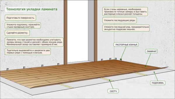 Для правильной укладки ламината, следует внимательно читать инструкцию производителя, которая находится в каждой пачке.
