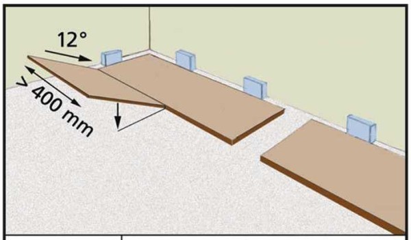 Если при расчете последнего ряда ширина или длина получается меньше рекомендуемых размеров, то первую полосу настила следует отрезать соответствующим образом по ширине и/или длине.