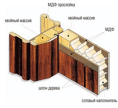 Высокая стоимость деревянных конструкций делает их не самым доступным вариантом – особенно для бюджетного ремонта. Для снижения цены из дерева выполняется только каркас. Сверху наклеиваются листы шпона – материала, получаемого склеиванием тонких срезов древесины.