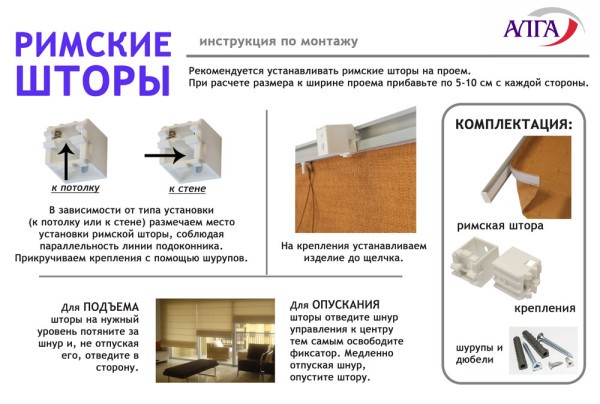 Монтаж римских штор