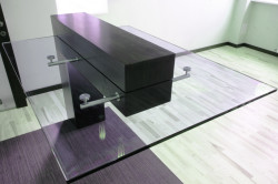 Наибольшим спросом пользуется стекло, из которого должны быть изготовлены главные предметы интерьера. Эффектно будут смотреться стеклянные полки, столики и стеллажи.