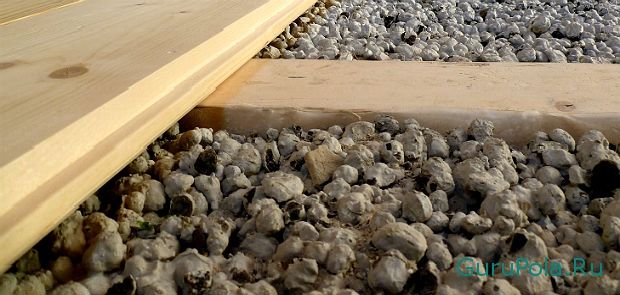 Для теплоизоляции пола рекомендуется использовать керамзит различного фракционного состава. Это связано с насыпным уплотнением материала и ликвидирует конвекционные потоки воздуха в толще слоя. Вспененная глина для утепления деревянных полов пригодна только в чистом виде. По бетонному основанию керамзит входит в состав плавающей стяжки пола.