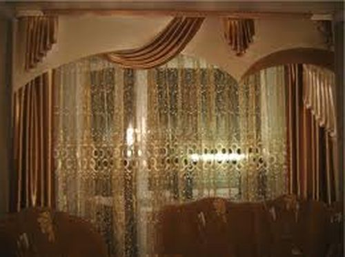 Довольно часто для изготовления ламбрекенов используют следующие виды тканей: хлопок, лен, вуаль и другие.