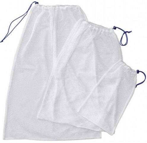 Самые распространенные материалы — полиэстер и нейлон. Они стойко выдерживают высокие температуры, не дают усадку и не деформируются. Эти синтетические материалы износостойкие, экологичные и прочные. Нейлон можно многократно использовать без всякого ущерба для его свойств и целостности. Материал может иметь разную структуру. Бывают мешочки: