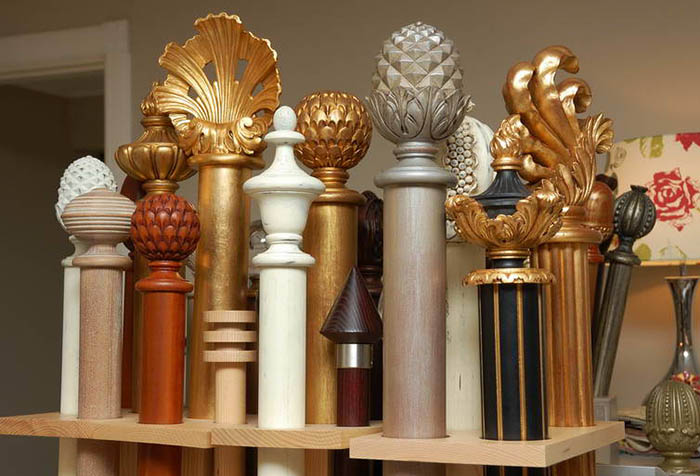 Ассортимент наконечников традиционно очень широк. Здесь есть всё: от резных растительных или геральдических мотивов до минималистских вариантов для современных интерьеров