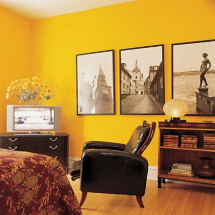 В то же время хорошим выбором будет создание желтых акцентов, оформление контрастной акцентной стены в спальне у изголовья, сочетание желтых обоев с обоями более спокойных оттенков.