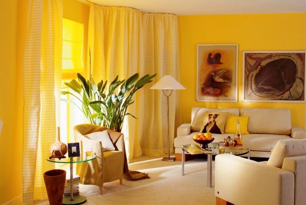Так вот, в некоторой степени схожие, только более приятные, чувства люди испытывают, находясь внутри помещения с желтыми стенами. Особенно заметным такое проявления является в тех случаях, когда интерьера комнаты дополнительно освещается солнечными лучами, поступающими через открытые шторы на окне.