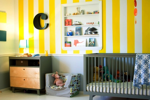 Фото: желтые обои с белой полоской будут отлично смотреться в интерьере детской комнаты