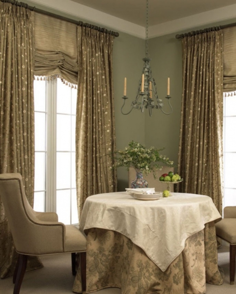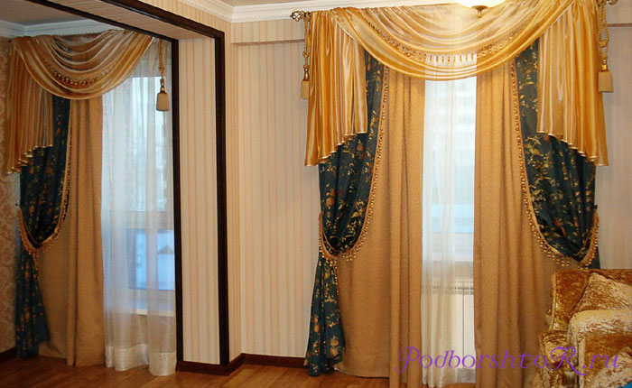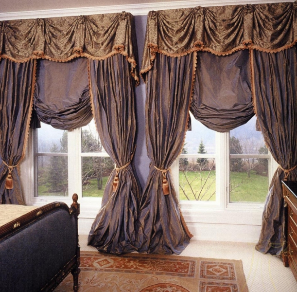 - При выборе материи учитывать ее способность не пропускать свет, хорошо драпироваться и сочетаться с основной цветовой гаммой помещения.