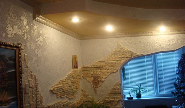 Необычным и уникальным методом является отделка стен искусственным камнем.