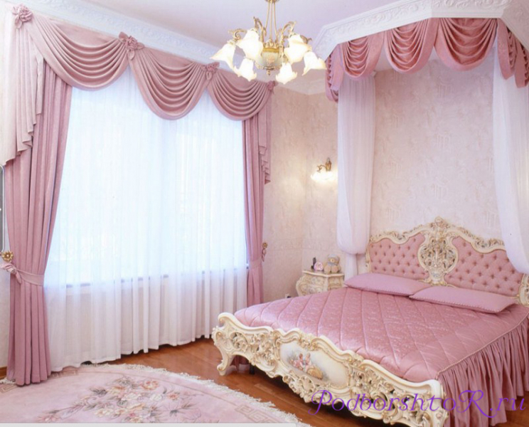 Красивые розовые шторы для спальни