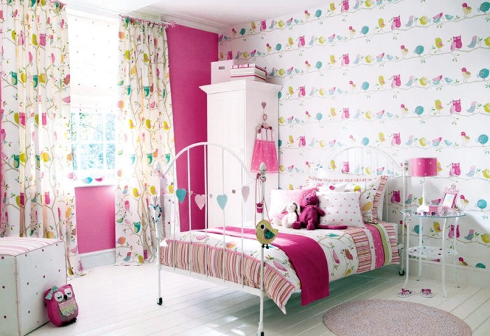 Старайтесь под ваши бумажные обои подобрать подходящую мягкую мебель. Например, если обои розовые с рисунком, то мебель можно взять коричневую, песочную, бежевую, чёрную и других цветов. Аксессуарами в детской являются милые мягкие игрушки, комнатные цветы в горшках на подоконнике, яркие поделки детей.