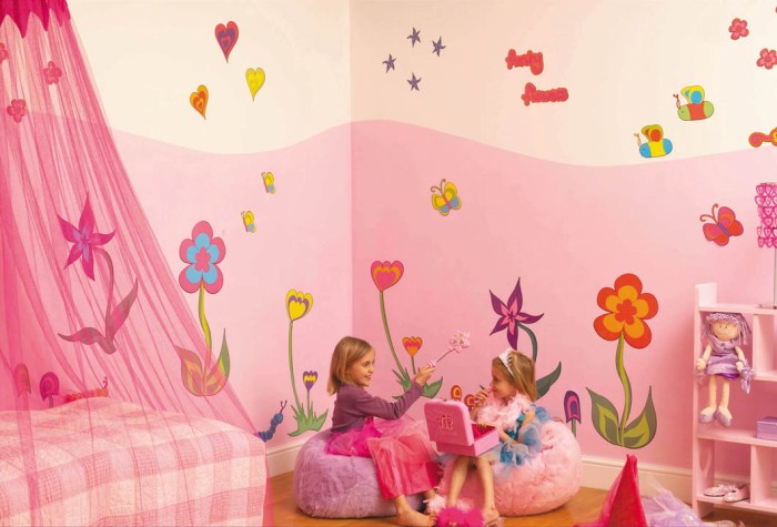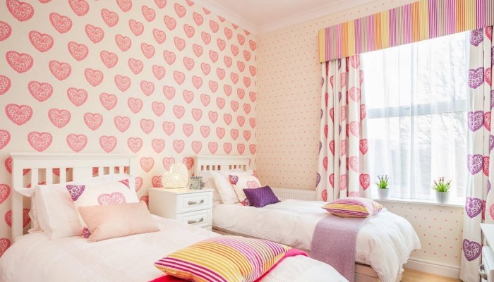 Хорошо если дочери договорятся розовые у них будут обои или кремовые? А может салатовые с мороженным? В случае споров и разногласий можно аналогично половину детской оклеить полотнами, которые нравятся старшей сестре. Другую теми, которые по душе младшей и конфликтов не будет.