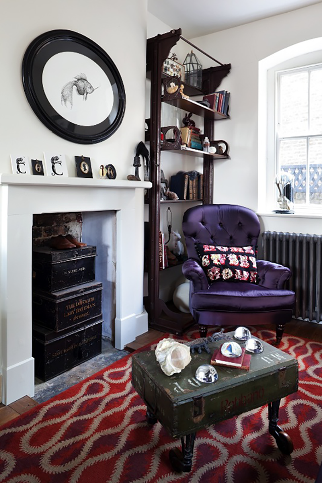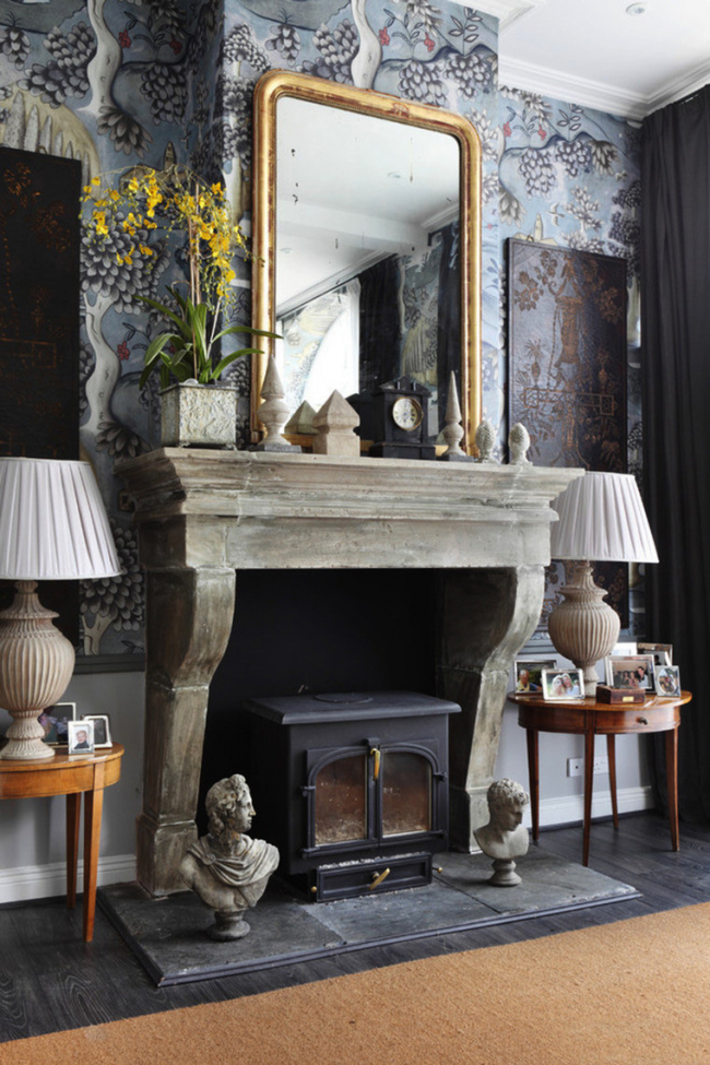 В каминной нише можно разместить что-нибудь непривычное, например, старинный сундук