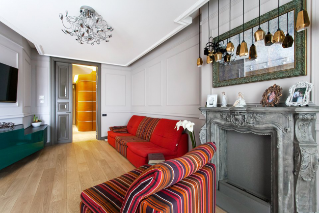 Современный интерьер дополнит камин в традиционном стиле с применением лепнины